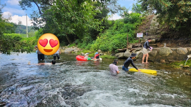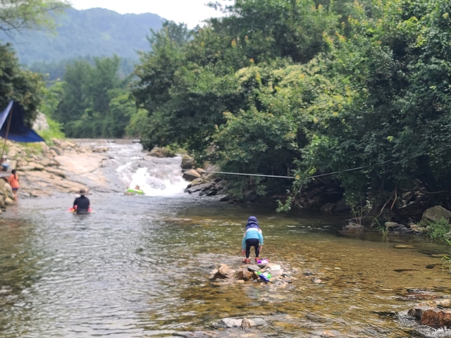 한여름 캠핑 좀 걱정은 되었지만,, 날씨도 그전날 비 덕분에 게곡이 너무 좋았어요. 땀 흘리고 계곡들어가서 놀고 즐거웠습니다. 다소 사이트가..