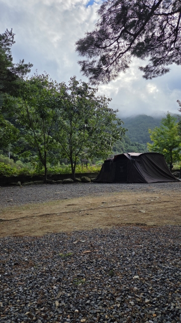정말 큰 소나무가 많아서 그늘도 많고 뷰도 시원합니다. 시설들도 깔끔하게 잘 관리되는 편이고 사장님도 친절하셨어요. 계곡도 좋았는데 여름..