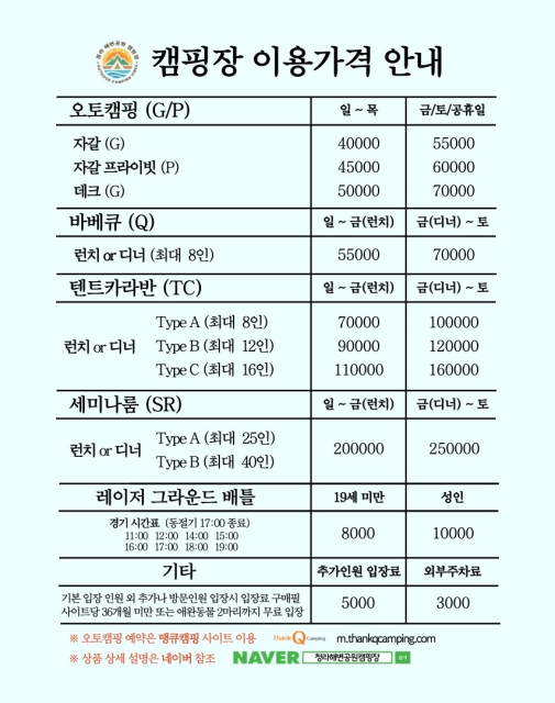 * 비회원으로 예약시 휴대폰 번호인증이 필요합니다. 땡큐캠핑 회원으로 가입하시면, 빠른 예약과 각종 할인혜택을 받으실 수 있습니다.