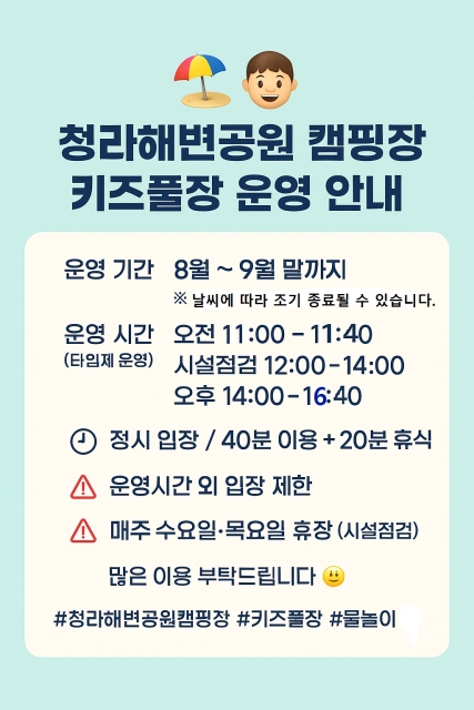 | 주소 | 인천 서구 첨단서로 190 (청라동) 청라해변공원캠핑장 |